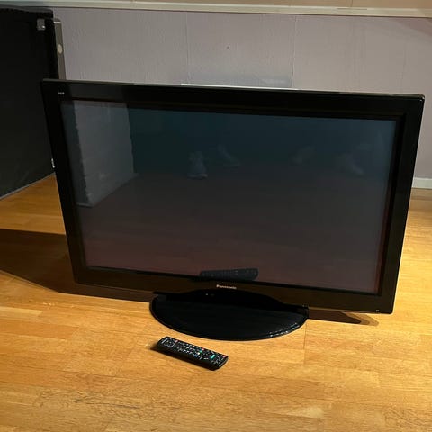 Til salgs er en god 40-tommers TV, som må monteres på veggen. Alt fungerer bra: lyd og bilde er veldig bra. Fjernkontroll følger også med.