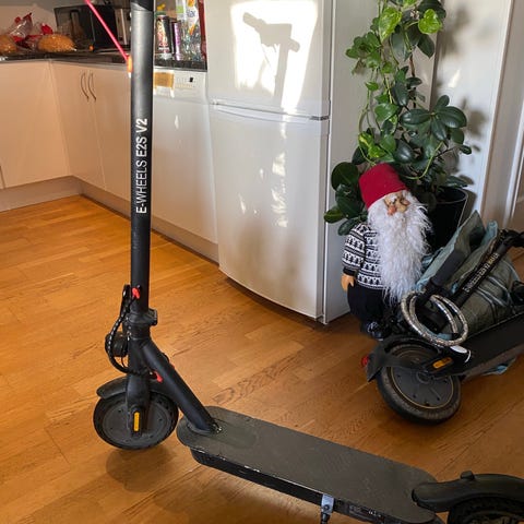Selger el sparkesykkel fra E-Wheels i modellen E2S V2. Kjøpt i juni 2023. Dekkene er punkteringsfrie. Lader følger med. Kjøper må hente hos meg.