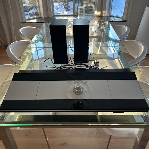 Bang og Olufsen Ouverture anlegg følger med. Dessverre med et par feil. 😔