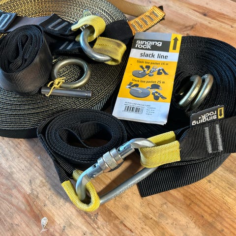 - Slakkline Basic kit inneholder 10m line med alt du trenger for å komme igang, og er svært enkel å sette opp.