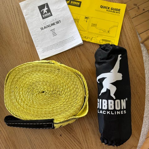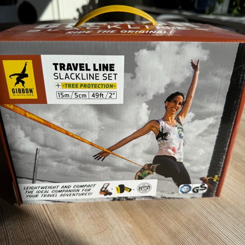 - Slakklinen er 35mm bred og jekken gjør at du kan spenne opp lina på null-komma-svisj. Settet veier kun 1,7 kg og er perfekt til å ta med på tur, i parken eller på hytta.