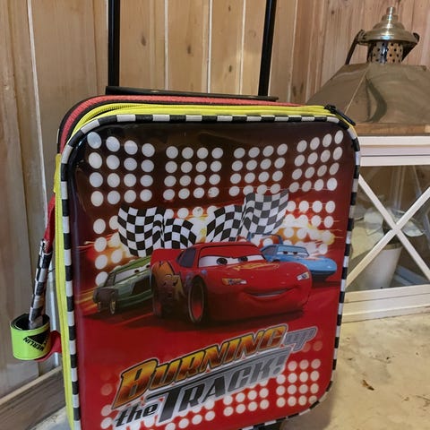 Unik, tøff, rød reiseveske/toalettveske med Route 66 motiv.