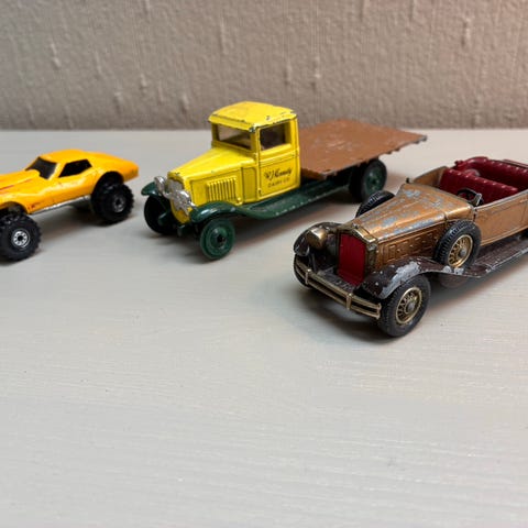 Veteran biler selges samlet eller hver for seg. En merket guisval og den andre merket tomica. Noe bruksmerker kan forekomme. Selges som de er. Se bilder.