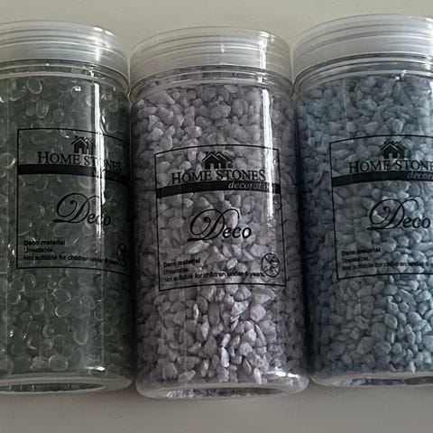 Blå " diamant" steiner. Fine til å pynte festbord. 250 for alle 4 boksene.