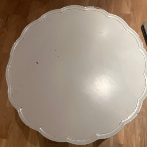 Bordet er malt hvitt. Kan trenge et nytt strøk maling.