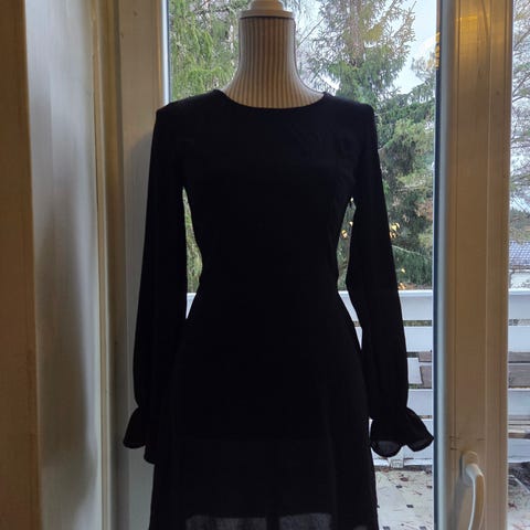 Pen sort kjole med puffermer og omslag. Kun brukt en gang, så helt som ny.