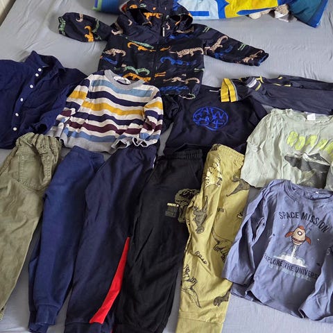 Klespakke til gutt str 158, ca str 13 år. Selges samlet. Bukser, T-skjorter osv. Oransje genser følger med gratis pga flekk.