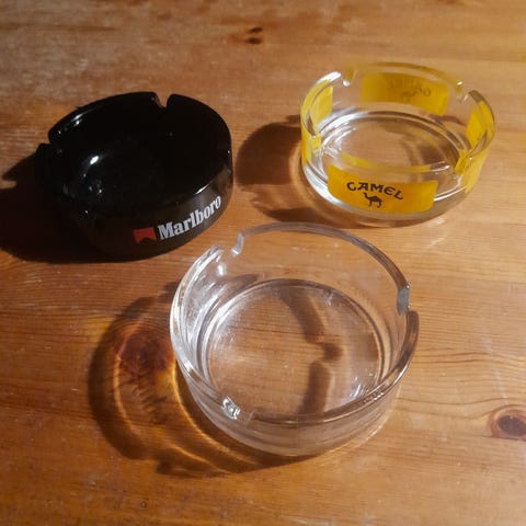 Tre fotballglass fra Get Red kampanjen i 2005. Dette var et samarbeide mellom Coca-Cola og Norges fotballforbund og har signaturene til John Arne Riise og Morten Gamst Pedersen.