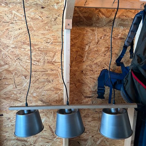 Pent brukt taklampe i sotet glass, ingen bruksmerker. Ledningen fra kuppel og opp til takfeste er ca. 25cm og åpning til lampe er ca. 12cm. Selges for 200kr. Kjøpt på lampemagasinet for 4 år siden.