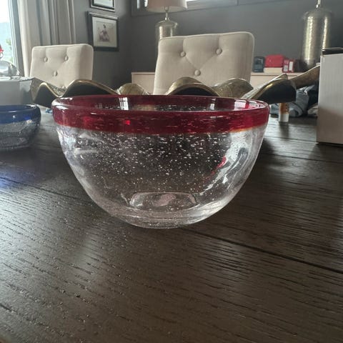 Flott HG skål i tykt klart glass med furumønster på undersiden