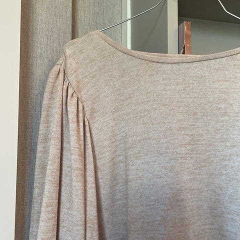 Lengre modell med knepping på bryst og nede på ermer. 3/4 til halvlang arm.