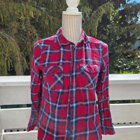 Selger en lang skjorte i rosa, hvit og blå fra Lee. Knepping på brystet og én brystlomme.