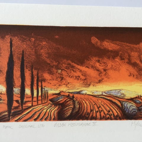 Fint litografi av Myhre selges kr. 250,- Motiv 14,5x10 cm Ark 19x15cm. Kan sendes om kjøper betaler porto.