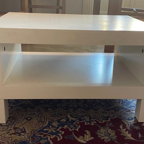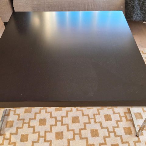 Lite og praktisk bord fra IKEA med bordplate som kan anvendes på to sider - en lys og en sort.