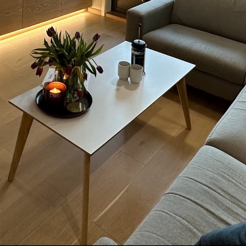 Lite salongbord / sidebord med bordplate som kan snus