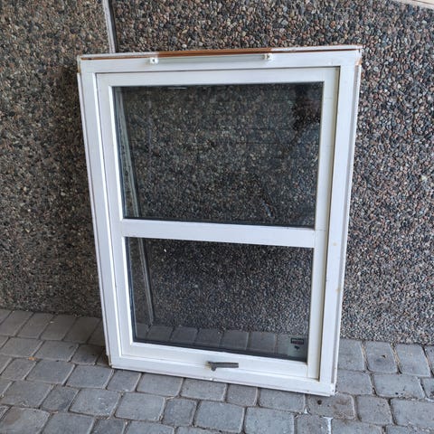 Solid , trelags fastkarm vindu. B 59 cm. H. 119 cm.