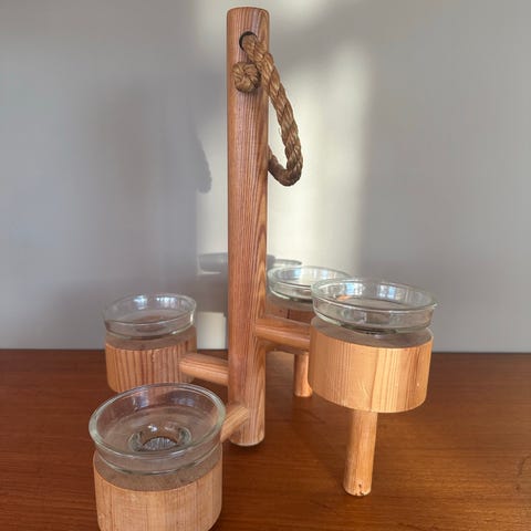 Svensk lysestake, furu, laget av Gunnar Kanevad. Passet til store telys eller små kubbelys.