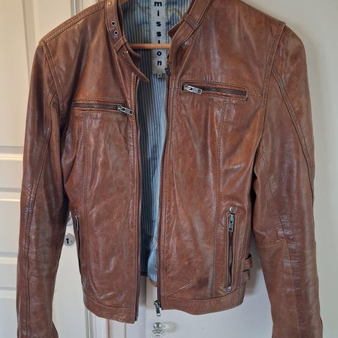 Pen skinnjakke i brunt mokkaskinn