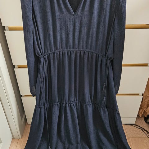 Skikkelig flott kvalitetskjole i marineblå fra Tiger of Sweden. Den er i 100% Viscose og er helforet. Str er oppgitt til å være XL, men jeg synes den er veldig liten i str og at den ville være flott på en M/L dame.