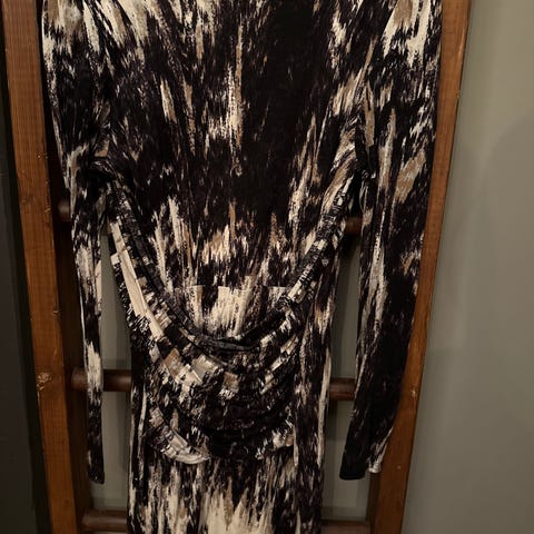 Den har nydelig drapering i kryss foran magen og den er derfor veldig elegant og slankende . Kjolen krøller ikke og er derfor perfekt å ha med seg i kofferten.