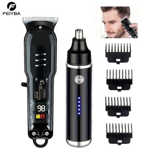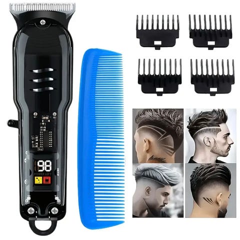 KAHL Profesjonelle Elektriske Hårklippere for Menn - Trådløs, Oppladbar Litiumbatteri, 5 Tilbehør (1,5 mm, 2 mm, 3 mm, 4 mm), Inkluderer Rengjøringsbørste og USB-lader, Stilig Svart Design med Digital Skjerm, Profesjonelt Hårklippingsverktøy|Stilig Hårklipper|Holdbar Plastkropp, Hårpleie Essentials.
