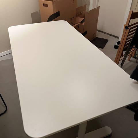 Bekant skrivebord i fargen hvit, helt ny, uåpnet i eske, klar for å hentes omgående.