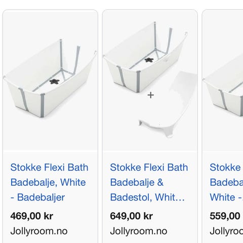 Stokke Flexi bath med tilhørende badestøtte i samme merke