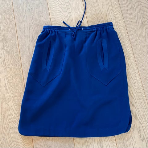 Miniskjørt i fresh blåfarge selges rimelig. Bomullsblanding. To lommer foran.