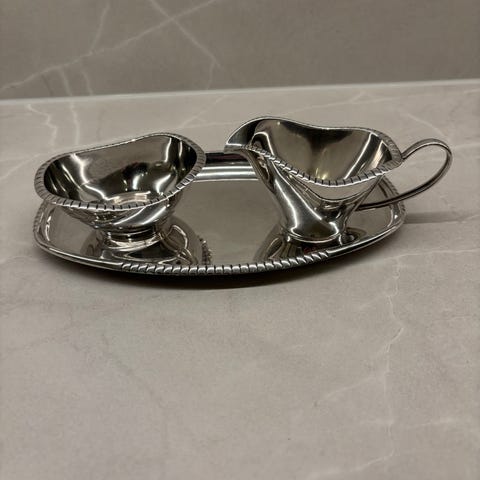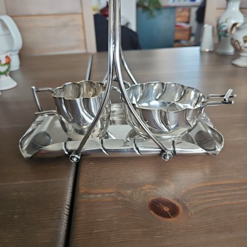 Sett i sølvplett selges.