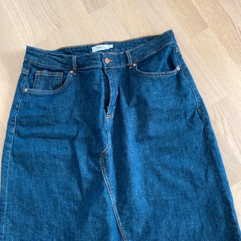 Fint dongeriskjørt m glidelås foran str 46 kr 450