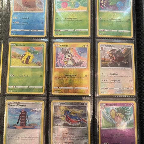 Holo og reverse holo fra ulike sword and shield set, 15kr per, , med noen unntak ved 20kr per (se liste under). Ønsker du noen non-holos fra settet kan det være jeg har det også, og disse kan i så fall kjøpes ved 5 kr per. Dette inkluderer også trainers fra settet, hvis det bygges deck. Sender kun ved ordre totalt >50kr, og kan diskutere pris litt ved kjøp av mange kort. Kombiner gjerne med andre annonser jeg har ute :)