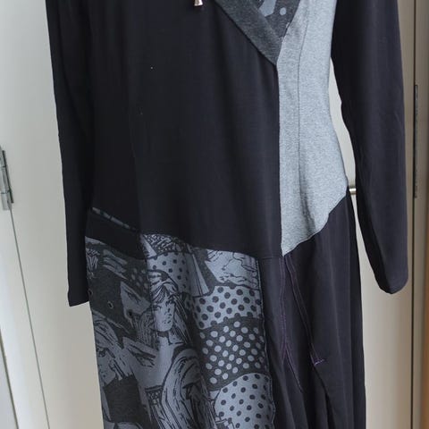 Varm og deilig kjole med fór, og glidelås foran. Litt stor i str.