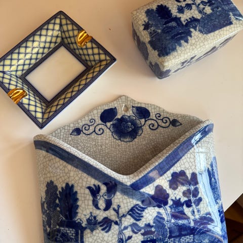 Nydelig vintage fat I porselen med messing.
