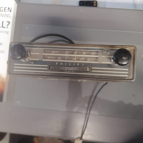Antikk bilradio fra ca 1951. Har antagelig sittet i en Mercedes fra samme tid. Må pusses opp.