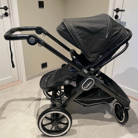 Selger pent brukt sort Emmaljunga NXT90, komplett med bag- og sportsdel, med originalt soltrekk, regntrekk og myggnetting.
