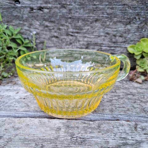 GAMMEL VAKKER GLASSBOLLE I FARGET PRESSGLASS.