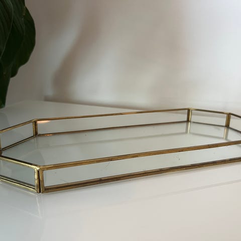 Søtt lite brett 32,5*16 cm - glass - malt rosemotiv Selges 270kr + evt frakt 69kr postnord eller fiks ferdig - små/svake spor etter vannskade langs en kant.