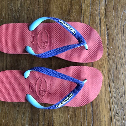 Selger et par helt nye og ubrukte Havaianas flip-flops/sandaler i modellen Men’s Brazil Logo, farge Navy Blue.