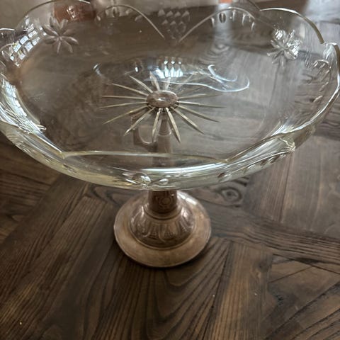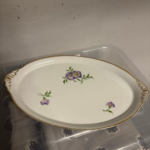 Fatet har flott patina og alderstypiske bruksspor, men fremstår i god stand. Egner seg både som pynt, serveringsfat eller samlerobjekt.