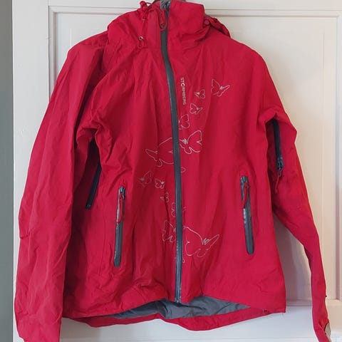 Med hette og masse praktiske lommer. Virker vindtett. Det er ikke helt min farge, eneste grunnen til at jeg kvitter meg med den. I tillegg til å ha altfor mye klær 😬