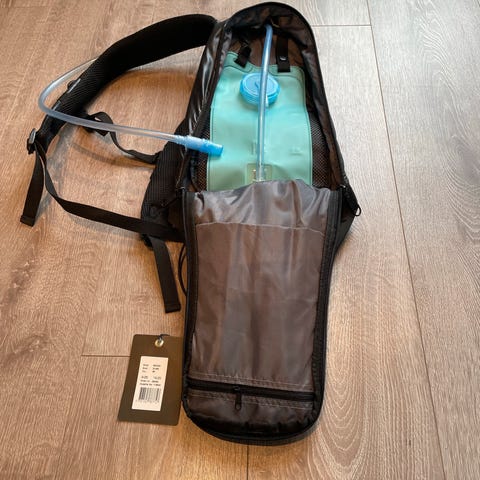 Giant cascade hydreringssekk 3liter. Drikkesystemet har ikke vært brukt. Den har lagt i skapet i 5 år, kun brukt på 2-3 sykkelturer, og har hatt med lappesaker til sykkel i det lille oppbevaringsrommet