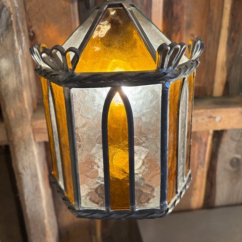 Flotte gamle blyglass lamper med farget glass og ikke minst sjel.