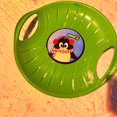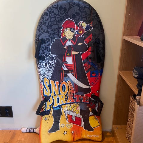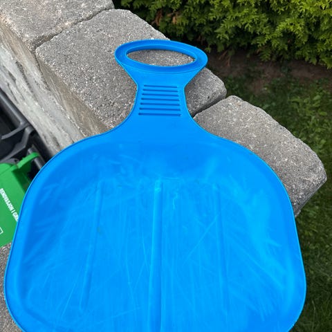 Blått rompeakebrett som er godt brukt, men helt og i god stand. Kan nok trenge en vask etter et par sesonger hengende ubrukt i garasje, men er mer enn klar for nye akebakker i vinter! Må hentes i Ski.