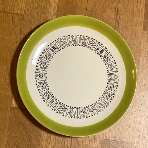 En stk tallerken , hel men noe misfarget på kanten se bilde . Fin stand .
