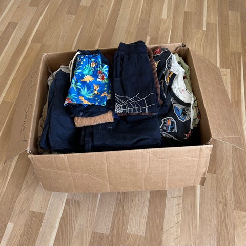 Klespakke med diverse. Flere sett i fra name it. Mange dongeri og fine bukser. Skjorter, T-skjorter, gensere. Noen bukser har noen hull som kan fikses, men de aller fleste er fine og lite brukte.