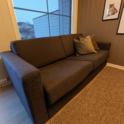 IKEA Friheten 3-seters sovesofa. Kjøpt brukt selv. Stått på barnerom. Godt brukt, kan med fordel renses. Stor oppbevaringsplass til sengetøy under setet. Kostet 5495,-