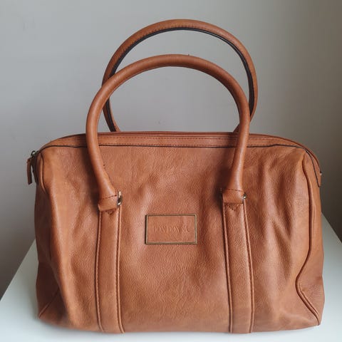 Den er kjøpt på airshoppen. Ikke vert brukt. Bredde 50cm x 40cm lengde. Stor lomme inni og en liten med glidelås. Plast og stoff. Kan sende med post nord kr 69. Den har ikke glidelås men en henpe med patentknapp til å lukke den med
