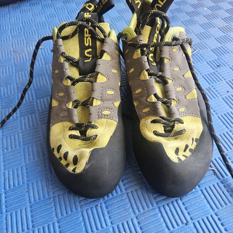 Dette er fortsatt gode klatresko hvis man ønsker å resåle dem, eller bruke dem til lett trening.