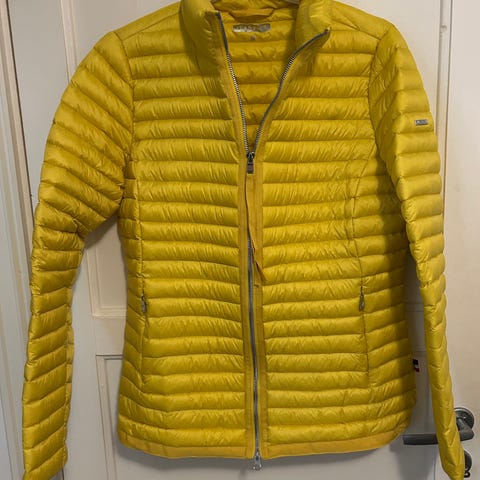 Stilig, gul, tynn dunjakke fra Line of Oslo selges