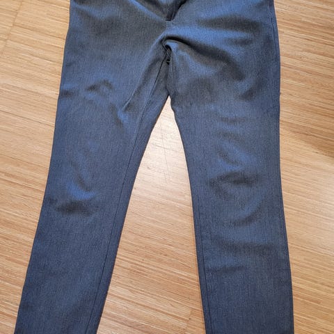 •Buksene har to skråstilte lommer foran, to passpolerte baklommer, beltehemper, skjult hektelukking og glidelås.